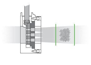 La válvula de control de compuerta deslizante de Schubert & Salzer utiliza un sello de superficie, en lugar de un sello anular, entre los 2 discos ranurados móviles. La presión del medio contra las placas móviles de la válvula aumenta realmente la función de sellado de la ésta. Como resultado de este sistema de sellado de superficies, se logran tasas de fuga de menos del 0,0001% del valor de KVs o CVs.