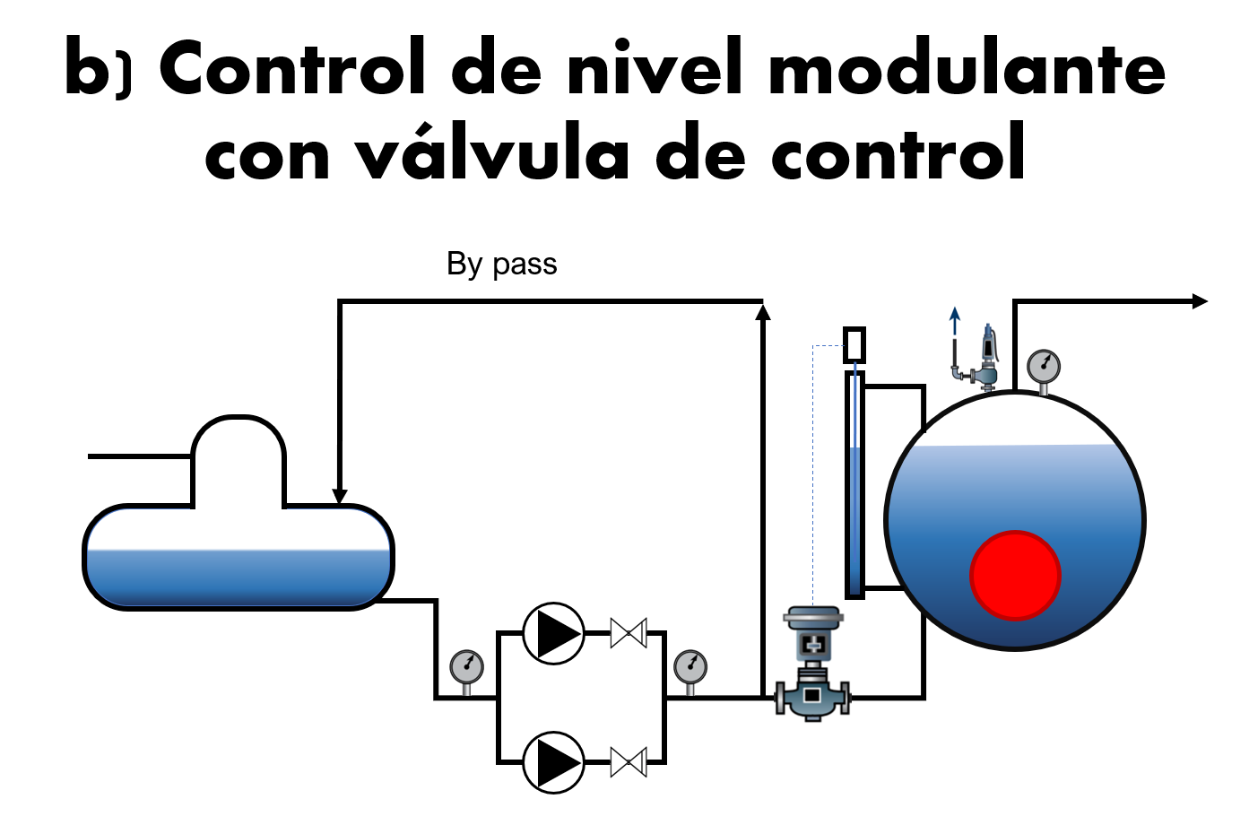 4. Adicionar el caudal por recirculación con válvula de control (si cuenta con línea de by-pass). Los sistemas con válvula de control suelen contar con una línea de recirculación o de by-pass. Este caudal de recirculación corresponde al valor de caudal mínimo indicado por el fabricante de la bomba. Puede considerarse un valor entre 10 a 20% del caudal a máxima eficiencia de la bomba de alimentación.