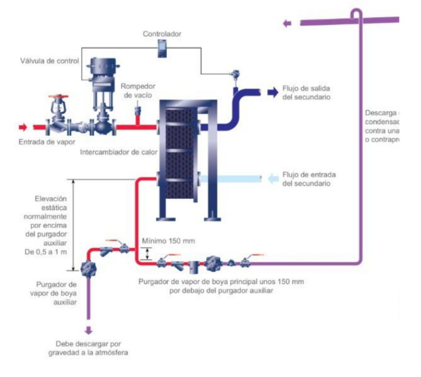 - Ubicación de la línea de condensado con respecto al equipo de proceso.