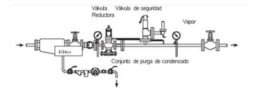 Un filtro también es un requisito antes de una válvula reguladora de presión de vapor para proteger la válvula de materiales que puedan corroer el sistema. Las líneas de vapor contienen frecuentemente materiales sólidos residuales de la corrosión en la línea de vapor. Este equipo filtrará la corriente de vapor y evitará que este material se aloje dentro de la válvula, lo que de otro modo podría causar una falla prematura. El filtro debe estar clasificado para mesh o malla 20 perforadas de acero inoxidable.