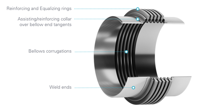 La unidad básica de toda junta de dilatación o compensador es el fuelle. Al agregar componentes y accesorios adicionales, la complejidad y la capacidad de los compensadores aumentan, lo que los hace adecuados para una amplia gama de aplicaciones y servicios.