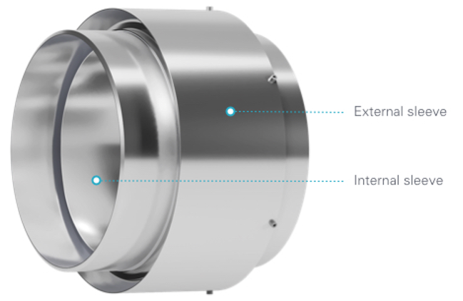 Camisa interna: Dispositivo que minimiza el contacto entre la superficie interior de los fuelles del compensador y el fluido que circula a través de él. Estos dispositivos también se denominan deflectores internos.