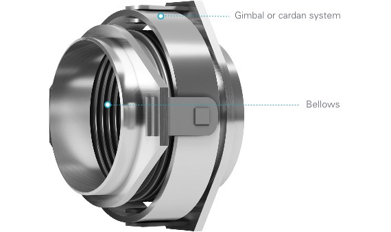 Gimbal (compensadores cardan): El sistema gimbal o cardan consta de dos pares de bisagras fijadas a un anillo flotante común.