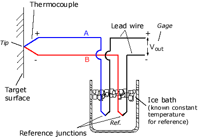 Esto sucede exactamente en la termocupla, existe una zona de distinción de niveles de calor en las uniones o cruces dobles del circuito: la corriente está formada por fuerzas electromotrices generadas por el diferencial de temperatura entre cada unión, y una unión de termopar utiliza un medidor de potencial conectado para medir esa corriente.