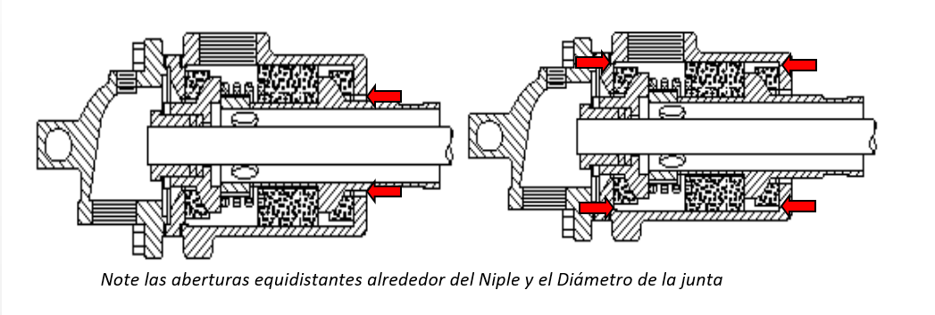 Las aberturas usuales y recomendadas se pierden causando un desgaste visible y dañando el cuerpo de la junta y el Niple.