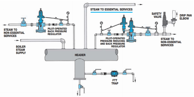En sistemas de vapor con varias aplicaciones de diversa importancia, existe la posibilidad de usar un regulador de contrapresión para evitar la sobrecarga de la caldera al aislar cargas no esenciales de procesos críticos en caso de que la demanda de vapor exceda la producción de la caldera.