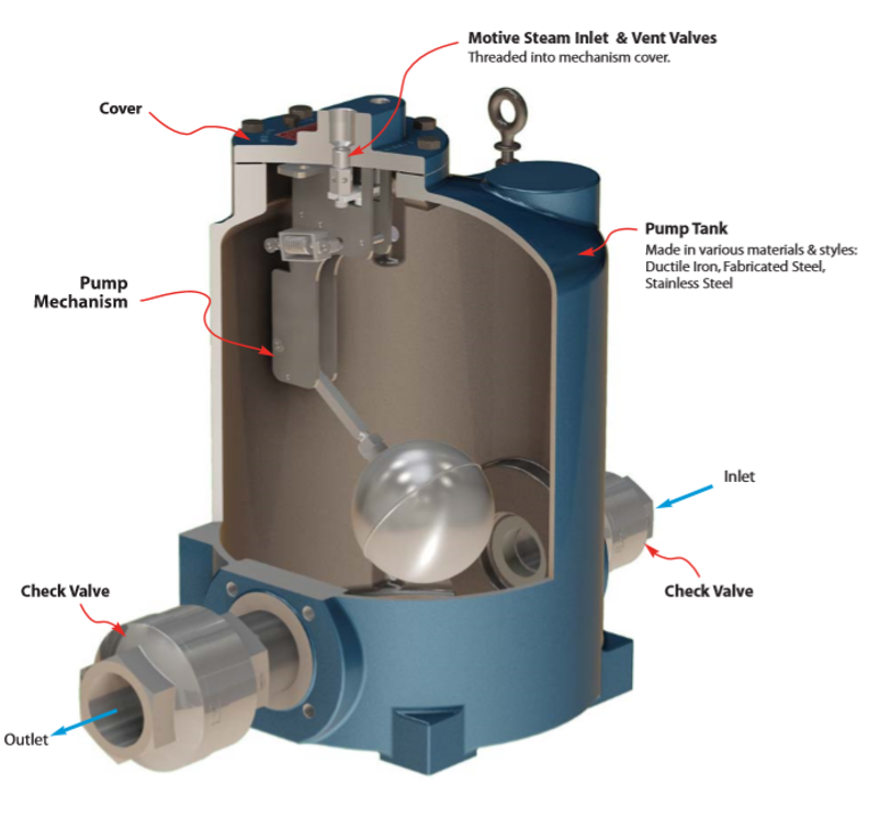 La confiabilidad es el objetivo principal para seleccionar una PMP (pressure motive pump) de tipo mecánica en lugar de las bombas de condensado eléctricas.