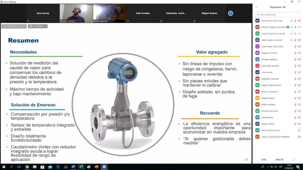 🔸¡Gracias a todos los participantes de nuestro Webinar: "BENEFICIOS EN LA TECNOLOGÍA VORTEX PARA LA MEDICIÓN DE CAUDAL EN SISTEMAS DE DISTRIBUCIÓN DE VAPOR" A cargo del Ing. Moisés Campos Guzmán y el Ing. Jorge Espinoza Especialistas en soluciones de medición de caudal en Emerson!🔸