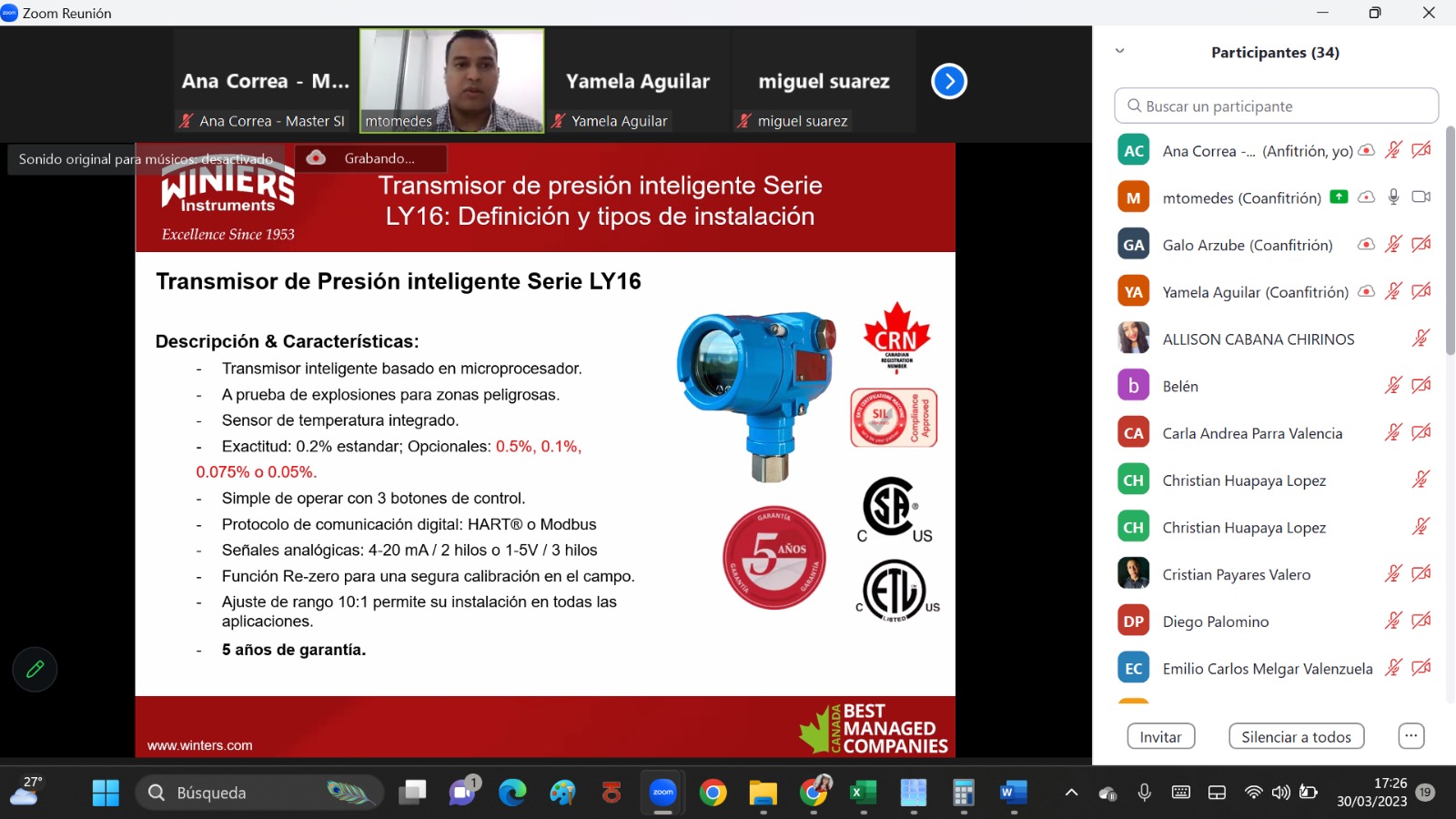 🔸¡Gracias a todos los participantes de nuestro Webinar: "𝗠𝗔𝗡Ó𝗠𝗘𝗧𝗥𝗢𝗦 𝗘𝗡 𝗟𝗔 𝗜𝗡𝗗𝗨𝗦𝗧𝗥𝗜𝗔, 𝗖𝗢𝗡𝗧𝗥𝗢𝗟 𝗬 𝗗𝗜𝗔𝗚𝗡Ó𝗦𝗧𝗜𝗖𝗢 𝗘𝗡 𝗦𝗨𝗦 𝗣𝗥𝗢𝗖𝗘𝗦𝗢𝗦"! 🔸 A cargo de Yamela Aguilar Gerente Regional de Winters Instruments Latinoamérica.