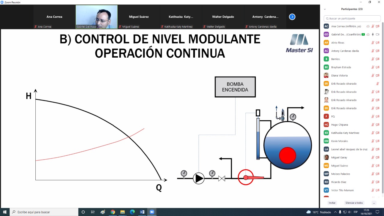Gracias a todos los participantes de nuestro Webinar: AUDITORIA ENERGÉTICA EN BOMBAS! A cargo del Ing. GABRIEL DEL POZO Consultor en control de fluidos especialista en sistemas de bombeo en Master SI.