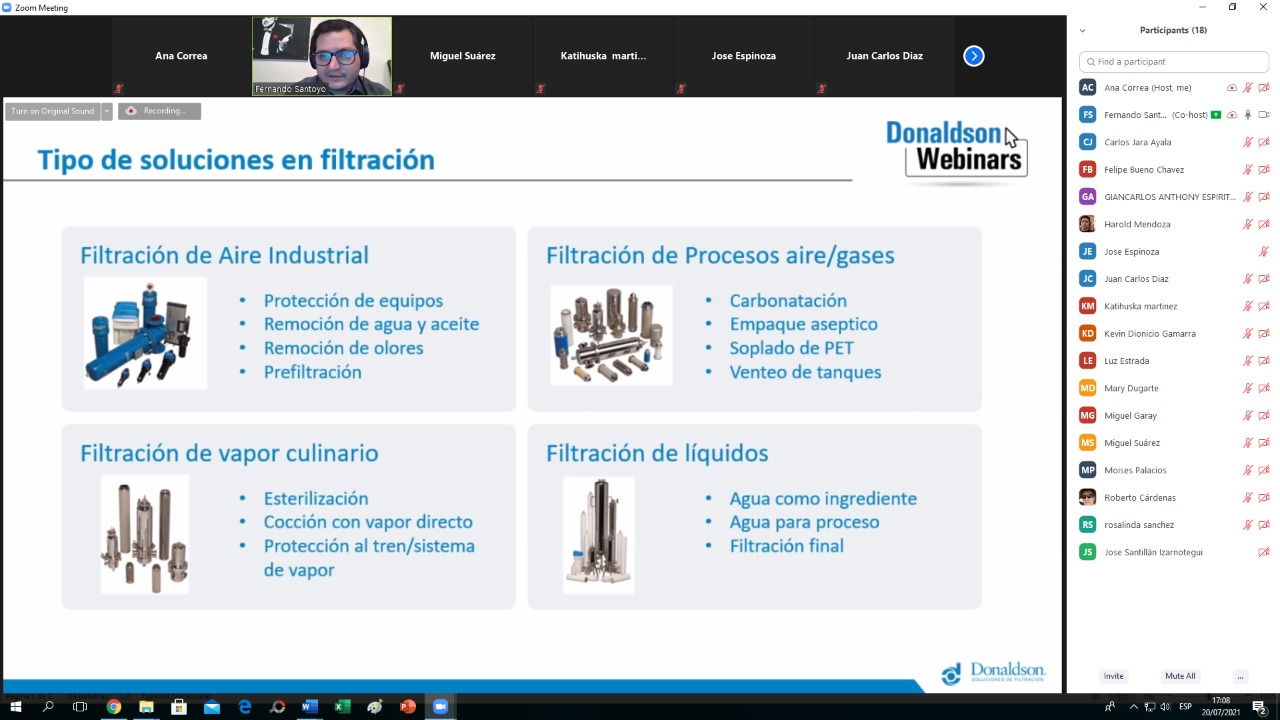 🔸️¡Gracias a todos los participantes de nuestro webinar gratuito "FILTRACIÓN DE LÍQUIDOS DE PROCESO EN PLANTA DE ALIMENTOS Y BEBIDAS" a cargo del Ing. Fernando Santoyo - Gerente de Donaldson en Sudamérica, Centroamérica y el Caribe!🔸️